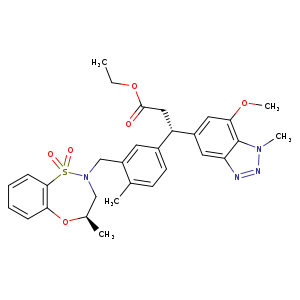 Ethyl (S)-3-(7-methoxy-1-methyl-1H-benzo[d][1,2,3]triazol-5-yl)-3-(4-methyl-3-(((R)-4-methyl-1,1-dioxido-3,4-dihydro-2H-benzo[b][1,4,5]oxathiazepin-2-yl)methyl)phenyl)propanoate