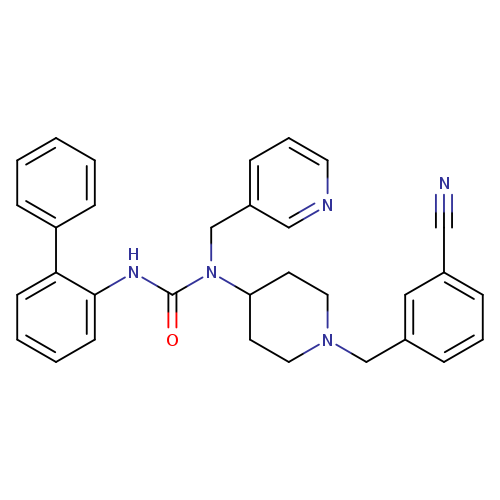 BiphenylUrea11;1-{1-[(3-Cyanophenyl)methyl]piperidin-4-yl}-3-(2-phenylphenyl)-1-(pyridin-3-ylmethyl)urea;Ambpe1010141