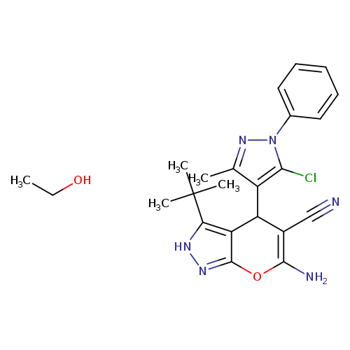 6-amino-3-tert-butyl-4-(4'-[1-phenyl-3-methyl-5-chloro]pyrazolo)-2,4-dihydro-pyrano-{[2,3-c] pyrazole-5-carbonitrile