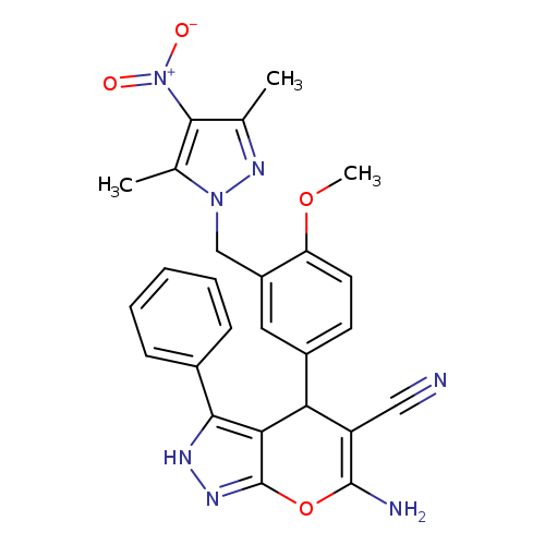 6-amino-4-{3-[(3,5-dimethyl-4-nitro-1H-pyrazol-1-yl)methyl]-4-methoxyphenyl}-3-phenyl-2,4-dihydropyrano[2,3-c]pyrazole-5-carbonitrile