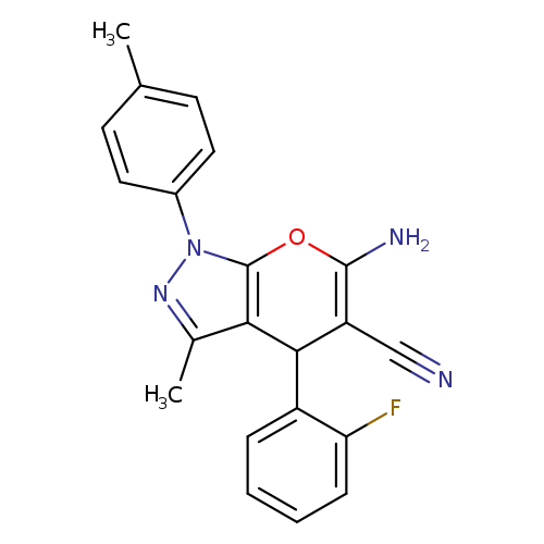 6-amino-4-(2-fluorophenyl)-3-methyl-1-(4-methylphenyl)-1,4-dihydropyrano[2,3-c]pyrazole-5-carbonitrile